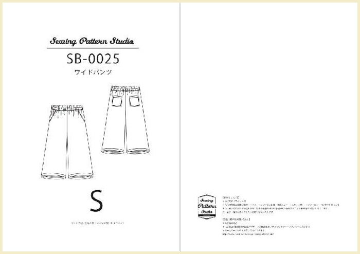 ワイドパンツ(SB-0025s) ・サイズ:S M L ■参考材料用尺(左からS・M・L) <表布 138cm幅> 2.2m・2.3m・2.4m <接着芯 薄手> 20cm幅10cm <ゴムベルト> 70cm・70cm・75cm どんなトップスにもマッチする、ワイドパンツです。
