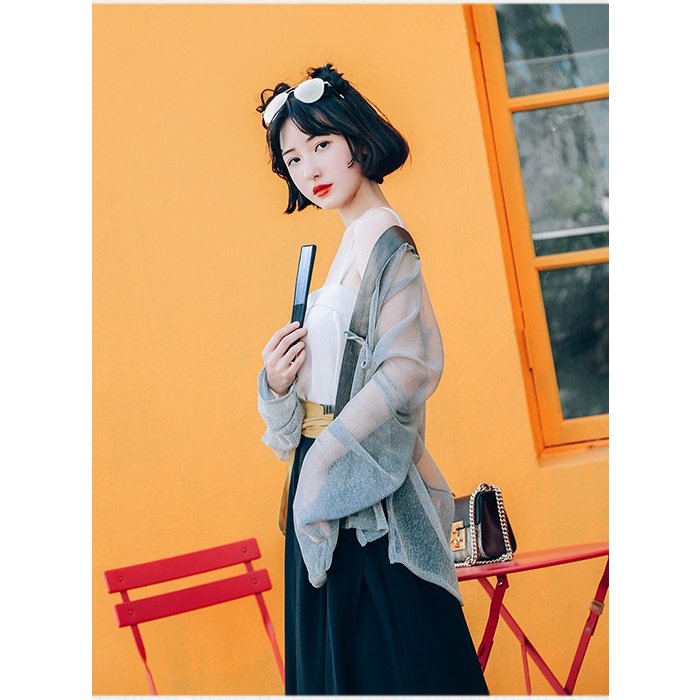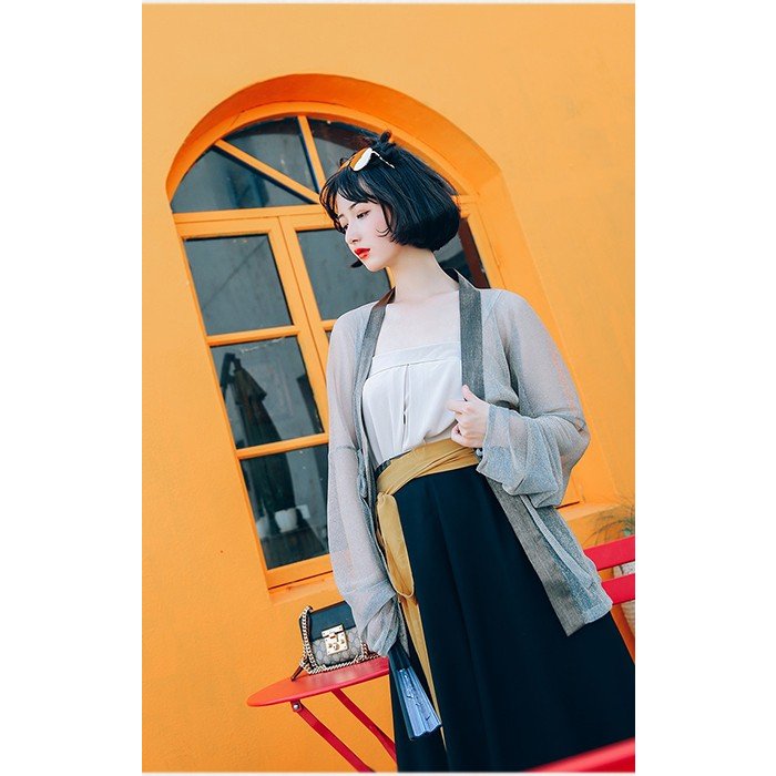 ハンフー スタイリッシュ ブラック 羽織 キャミソール ワイドパンツ スリーピース 漢服