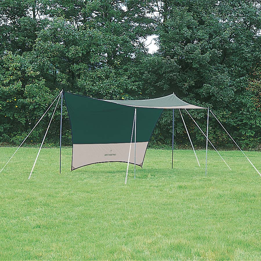 耐風性に優れるヘキサゴン(六角形)スタイルのタープ ループベルトと三角布で強度アップ 紫外線95%カット!UV-PROTECTIONコーティング生地を使用。