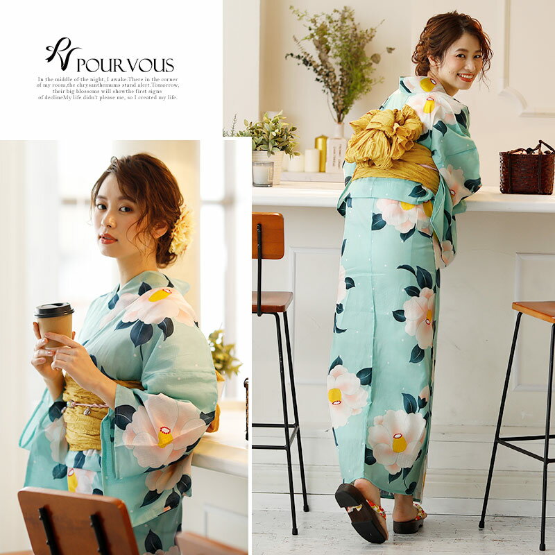 【5/1限定 ポイント最大5倍】予約【5月15日頃発送予定】 レトロモダン浴衣 ゆかた 大人 下駄 レディース 帯 浴衣セット 夏祭り 女の子 セット レトロ 浴衣 女性 花火大会 3点セット 椿 水色 黄 モダン 古典柄 古典 花 レトロモダン 花柄 兵児帯 お祭り ユカタ 夏 可愛い 花