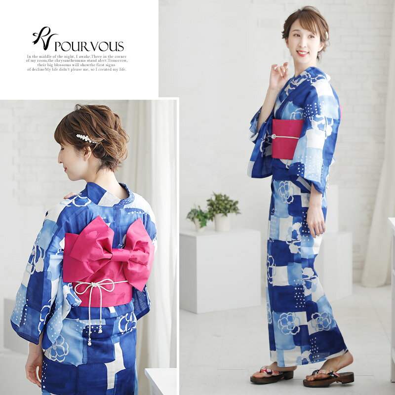 商品仕様 ◆3点セット(浴衣/作り帯/下駄:フリーサイズ23cm〜25cm) ◆浴衣素材:綿100%、帯素材:ポリエステル100% 発送について こちらの商品は5月15日頃入荷予定の予約販売となります。