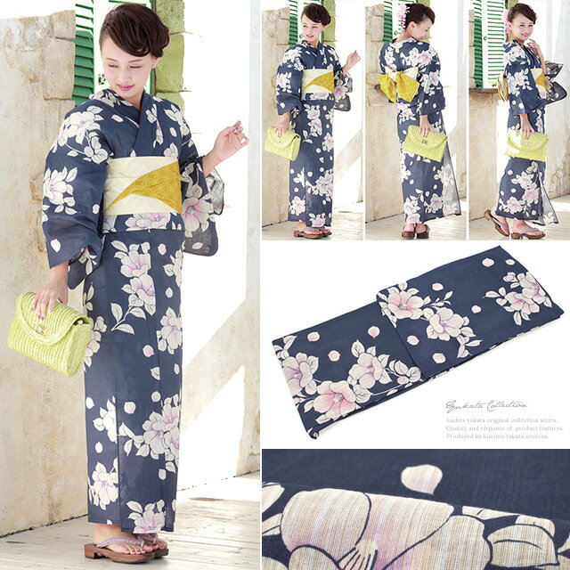estimated delivery.bonheur saisons Nostalgic Gallery 懐 浴衣セット紺地に椿の花が描かれた、大人っぽい雰囲気の浴衣です。